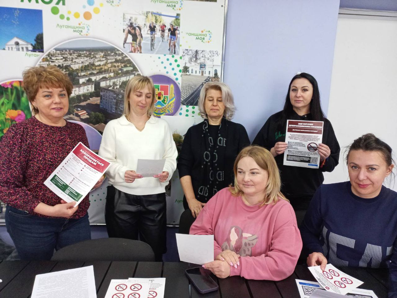З метою ефективного інформування та контролю за дотриманням антитютюнового законодавства спеціалістами управління захисту прав споживачів та контролю за регульованими цінами Головного управління Держпродспоживслужби в Луганській області була проведена інформаційно–роз’яснювальна робота щодо шкоди тютюнопаління та заборони куріння у місцях та закладах визначених у ст.13 Закону України «Про заходи щодо попередження та зменшення вживання тютюнових виробів і їх шкідливого впливу на здоров’я населення». Так, 05-06 листопада 2025 року були проведені семінари в гуманітарних хабах Луганської області, а саме гуманітарному штабі в м. Полтава Гірської міської військової адміністрації Сіверськодонецького району, Координаційному центрі з надання гуманітарної допомоги Марківської селищної військовій адміністрації Старобільського району у м. Київ, а також у гуманітарному центрі Кремінської міської військової адміністрації та у хабі «Луганщіна моя» у м. Львів – Старобільської міської військової адміністрації Луганської області.