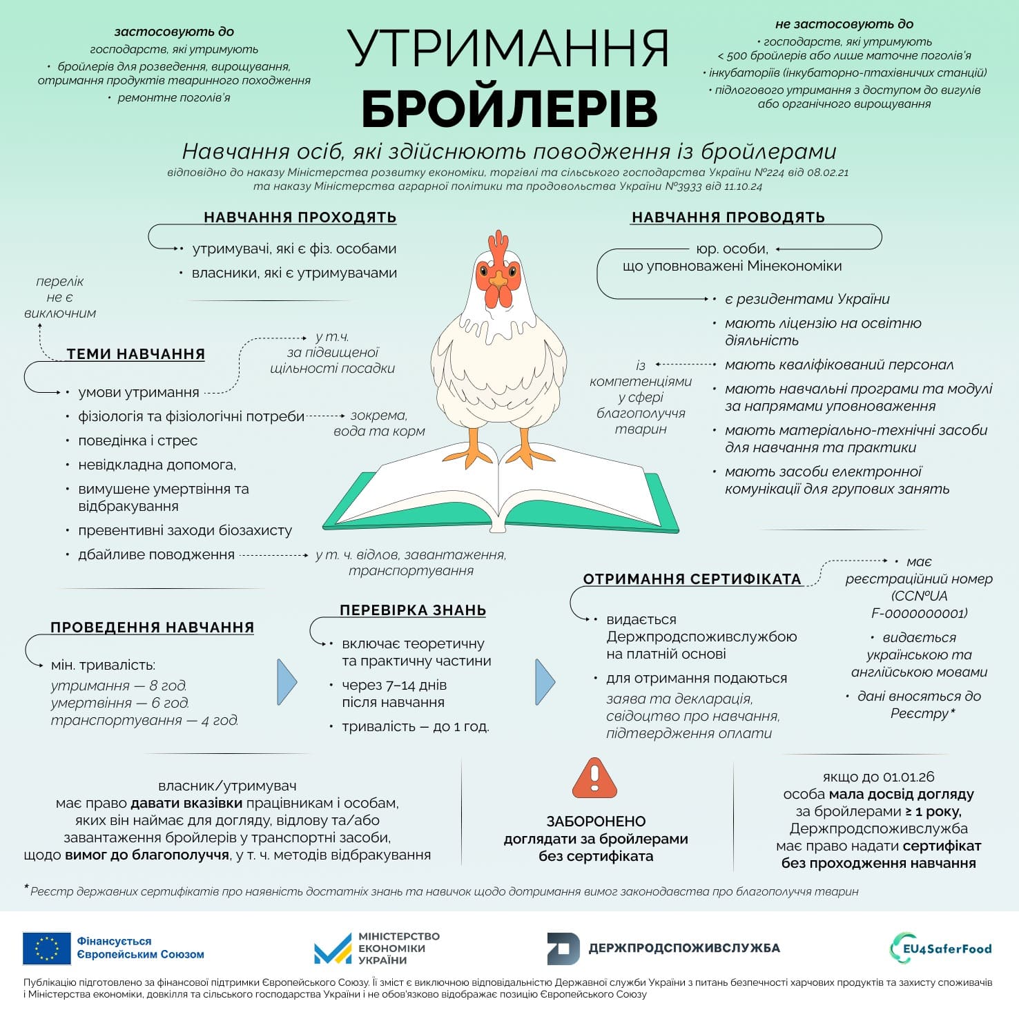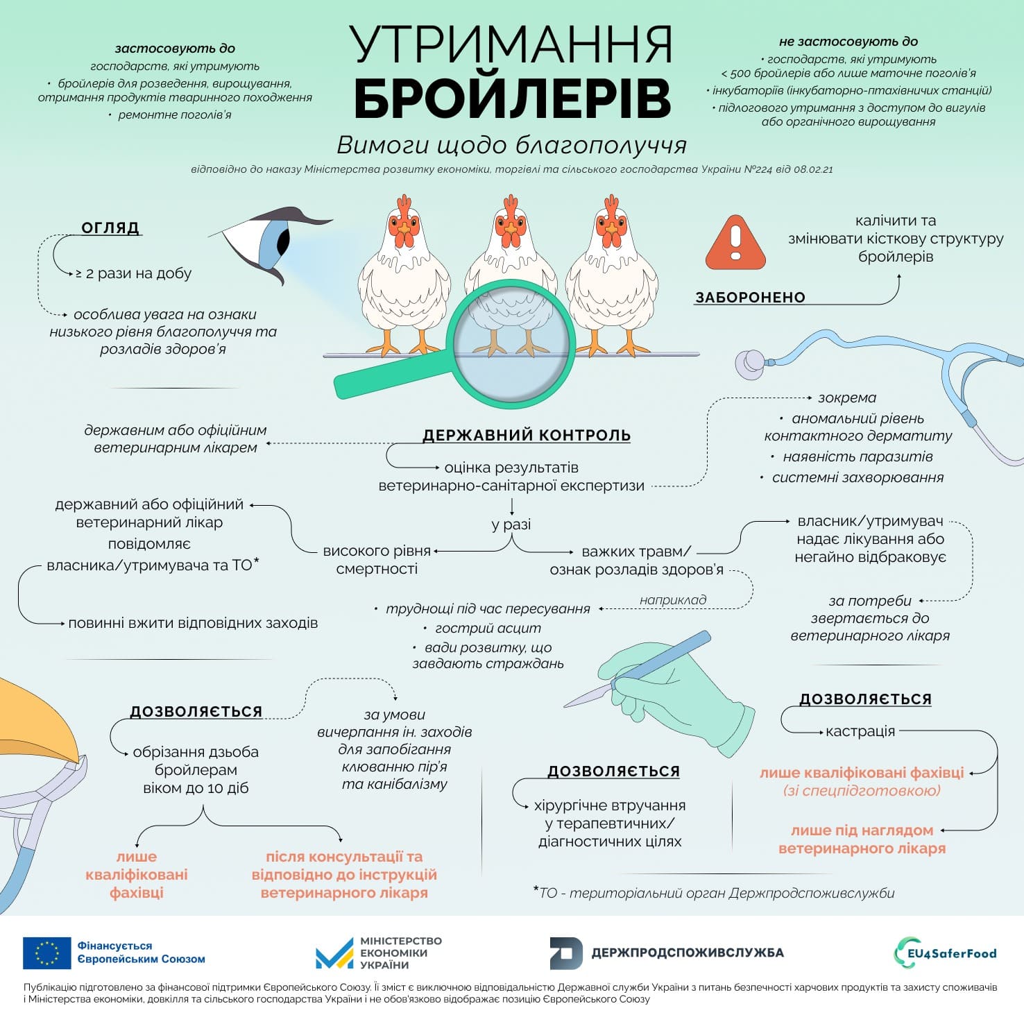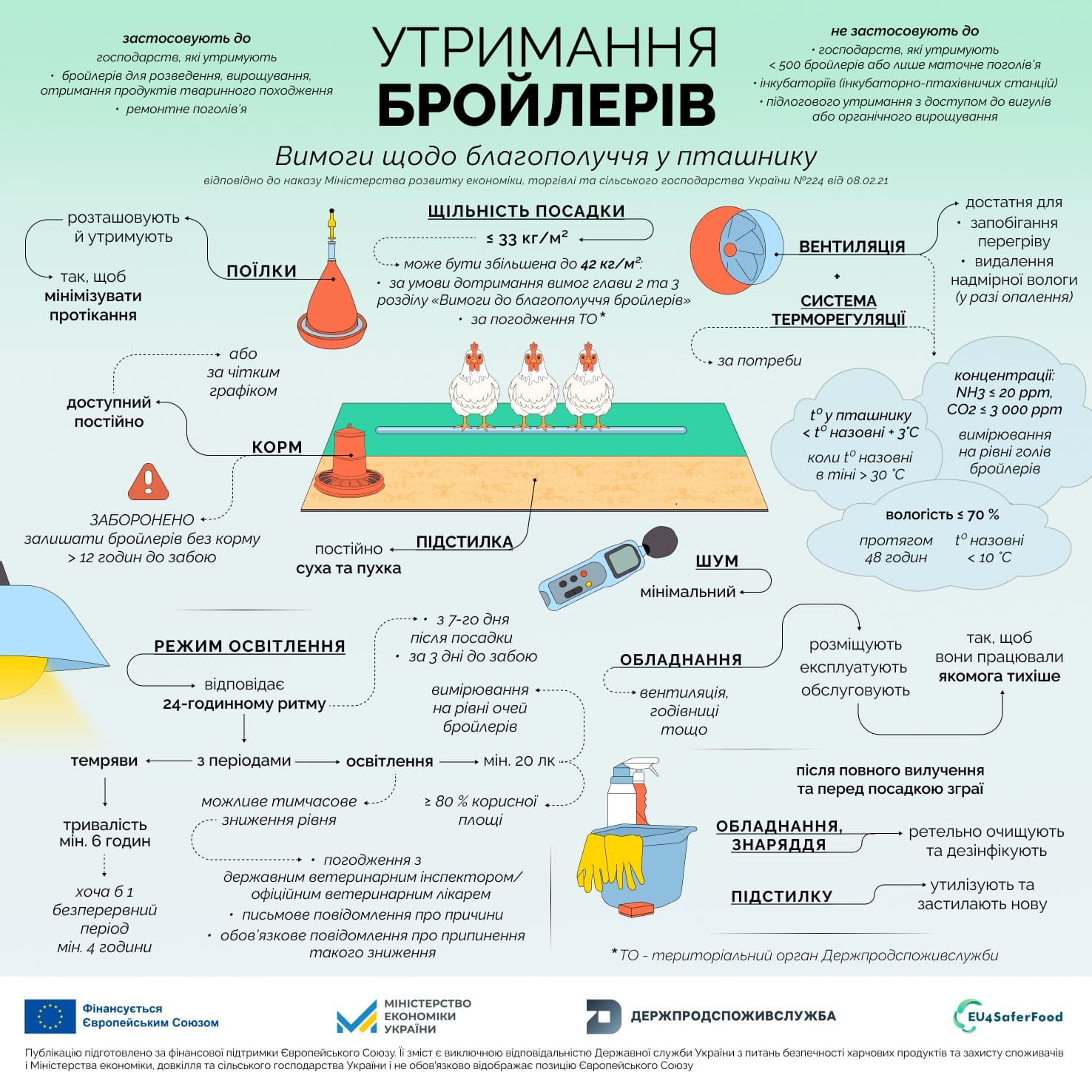 - наказ Міністерства розвитку економіки, торгівлі та сільського господарства України від 08.02.2021 № 224 “Про затвердження Вимог до благополуччя сільськогосподарських тварин під час їх утримання”